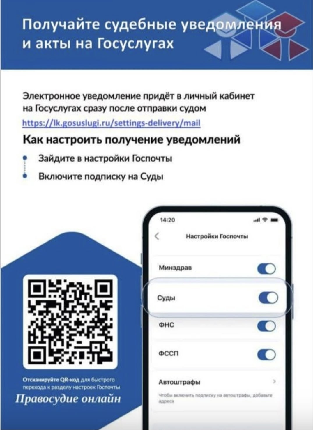 Получайте судебные уведомления в личном кабинете на Госуслугах